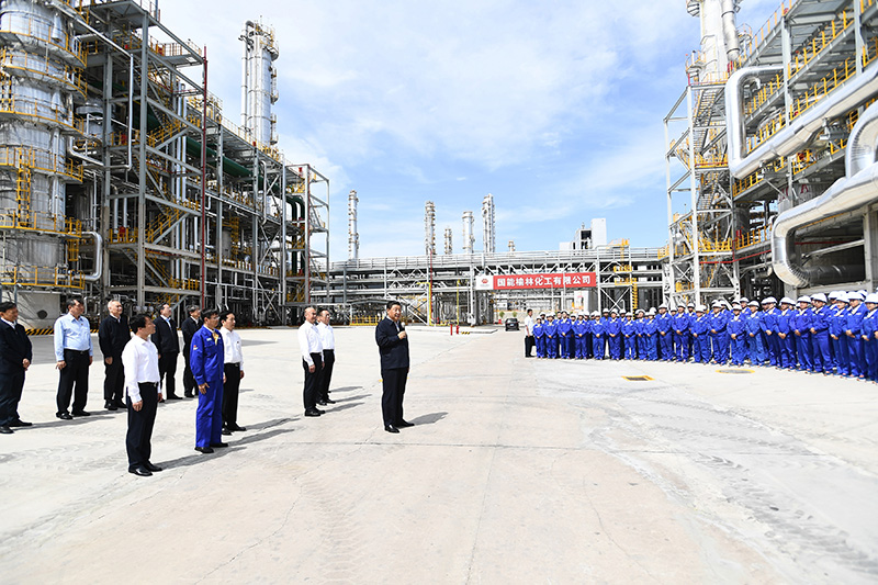 13日上午,習(xí)近平首先來到國家能源集團(tuán)榆林化工有限公司,了解循環(huán)經(jīng)濟(jì)煤炭綜合利用項(xiàng)目規(guī)劃建設(shè)運(yùn)行情況。在中心控制室,習(xí)近平觀看項(xiàng)目產(chǎn)品展示,對企業(yè)堅(jiān)持創(chuàng)新發(fā)展,堅(jiān)持安全、穩(wěn)定、清潔運(yùn)行的做法表示肯定。隨后,習(xí)近平到年產(chǎn)40萬噸乙二醇項(xiàng)目現(xiàn)場察看,詢問煤化工深度發(fā)展有關(guān)情況,同企業(yè)職工代表親切交流。他強(qiáng)調(diào),榆林是國家重要能源基地,為國家經(jīng)濟(jì)社會(huì)發(fā)展作出了重要貢獻(xiàn)。煤炭作為我國主體能源,要按照綠色低碳的發(fā)展方向,對標(biāo)實(shí)現(xiàn)碳達(dá)峰、碳中和目標(biāo)任務(wù),立足國情、控制總量、兜住底線,有序減量替代,推進(jìn)煤炭消費(fèi)轉(zhuǎn)型升級。煤化工產(chǎn)業(yè)潛力巨大、大有前途,要提高煤炭作為化工原料的綜合利用效能,促進(jìn)煤化工產(chǎn)業(yè)高端化、多元化、低碳化發(fā)展,把加強(qiáng)科技創(chuàng)新作為最緊迫任務(wù),加快關(guān)鍵核心技術(shù)攻關(guān),積極發(fā)展煤基特種燃料、煤基生物可降解材料等。
