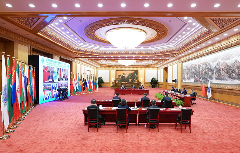 9月17日,國家主席習近平在北京以視頻方式出席上海合作組織成員國元首理事會第二十一次會議并發(fā)表重要講話。新華社記者 申宏 攝