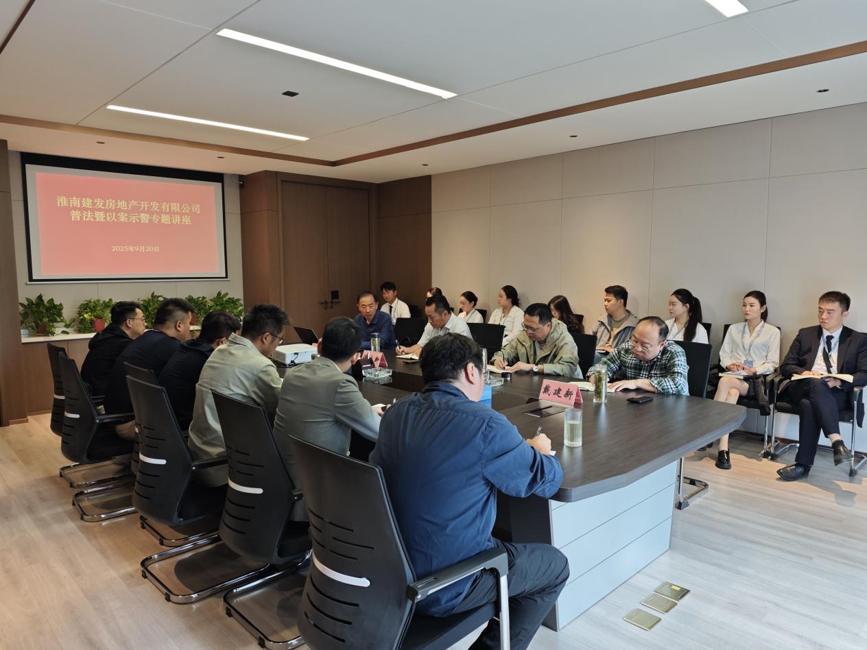 為增強(qiáng)員工法律意識(shí),持之以恒嚴(yán)守紀(jì)律,確保公司法制化規(guī)范化運(yùn)營(yíng)管理,9月20日上午,淮南建發(fā)房地產(chǎn)開(kāi)發(fā)有限公司在如意庭營(yíng)銷(xiāo)中心2樓會(huì)議室組織召開(kāi)普法暨以案示警專(zhuān)題講座,公司董事長(zhǎng)兼總經(jīng)理侯立新主持,副總經(jīng)理繆貴福、項(xiàng)目總經(jīng)理戴建新列席,公司法律顧問(wèn)史愛(ài)國(guó)授課,公司營(yíng)銷(xiāo)、工程部門(mén)員工參加。